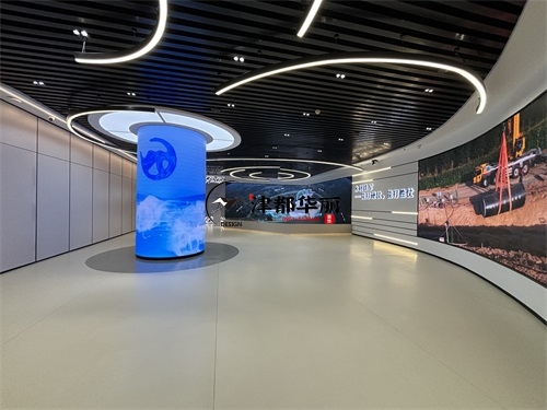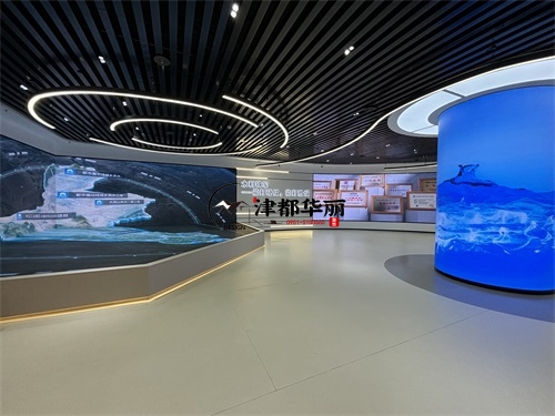 今天分享的是盐池水利水电办公楼装修设计实景照片,整体而言,该办公楼空间是银川装修公司津都华丽对“专业行业办公展厅”的优质落地:以极简工业风为基底,用科技载体承载水利水电的专业叙事,在功能实用性与主题表达力之间找到平衡,既展现了行业的硬核科技感,又传递了水利工程的人文价值。材质与细节上,银川装修公司津都华丽的“实用美学”理念贯穿其中:展墙采用模块化金属嵌板,既符合水利展厅的科技质感,又满足内容更新的弹性需求;灯光系统以间接照明为主,环形灯带与嵌入式射灯的组合,既保证空间明亮度,又通过光影层次营造科技氛围;而流线型展陈台的圆角设计、地面的隐形收边工艺,则体现了津都华丽在工业风设计中“细节柔化”的巧思。