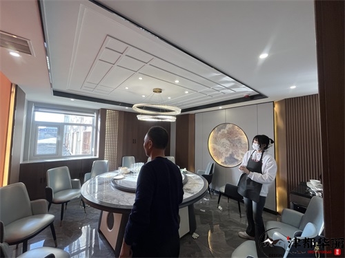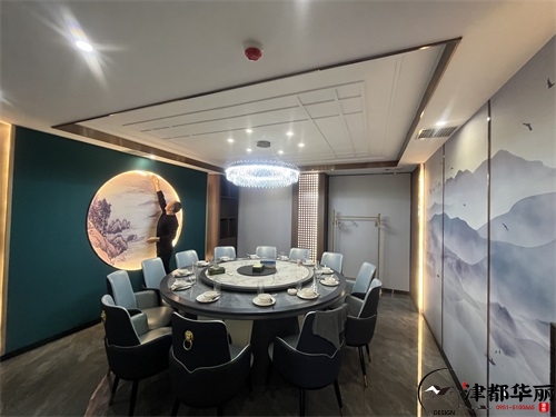 今天分享的是盐池金龙回坊火锅店装修设计实景,这家火锅店装修设计风格以新中式国潮风为核心,既保留了传统餐饮空间的雅致底蕴,又通过现代手法注入年轻活力,精准契合了当下火锅店装修设计中“文化赋能+体验升级”的趋势。从包间区域来看,火锅店装修设计的“轻奢质感”被巧妙落地:墙面采用木纹饰面板搭配金色叶片装饰,既借由木质元素传递中式空间的温润,又以金属细节提升宴请场景的精致感;圆形餐桌搭配带有新中式线条的软包座椅,浅白与墨绿的配色既呼应了传统美学的雅致,又通过软包材质保证了用餐的舒适感;顶部的圆形吊顶+水晶吊灯组合,既以“天圆地方”的传统意象强化空间仪式感,又用灯光的暖调氛围消解了商务包间的冷硬。