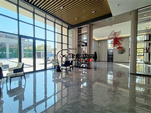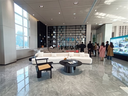 今天分享的是盐池熙玉园售楼部大厅装修设计项目实景图分享。这间售楼部大厅整体设计装修风格为现代轻奢风,符合当下流行的设计趋势。大面积落地窗引入充足自然光线,让空间更显通透开阔,既满足了售楼部展示空间的采光需求,又通过光影变化增强了空间的动态美感。背景墙的格子式装饰柜,将实用功能与装饰性结合,在保持风格统一的前提下,实现了售楼部的信息传递功能,体现了现代轻奢风“功能与美学共生”的设计逻辑。地砖采用的是大面积的灰色大理石瓷砖,美观大气的同时也方便清理,同时还延伸了空间视觉效果。银川装修公司津都华丽会根据工装类型,给客户量身打造出售楼部大厅设计装修方案。